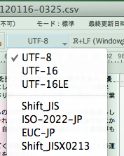 UTF-16LEがいいよ、と書いてある記事も多いのだが、mi.appで変換したものを再読み込みした場合、別な方向へ文字化けし、また改行コードの問題は解決しなかった。